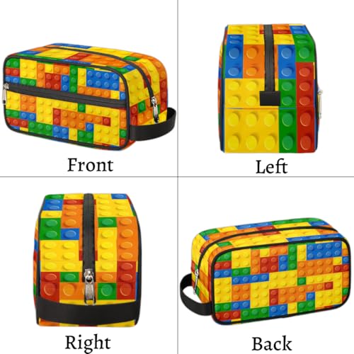 Colorful Building Blocks Travel Toiletry Bag for Kids, Waterproof Hanging Wash Bag Dopp Kit for Boys Shaving Bag for Toiletries Accessories 5