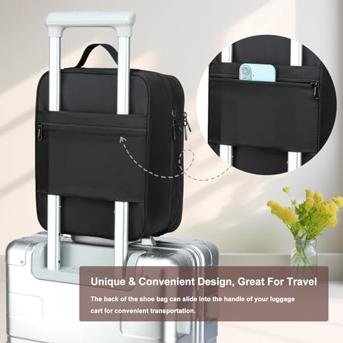 • 【Uniqe-design Details】travel shoe bag is designed with lots of unqie details, including a carrying handle, double zipper for easy-open, breathable mesh panels to keep shoe clean, phone pocket keeps your essential device secure and instantly accessible while you're on the move.