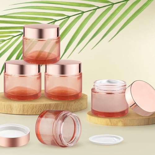 12 Pcs 60g/2oz Glass Cosmetic Jars Refillable Cream Bottle Containers Empty Sample Vials Jar with Rose Gold Lid for Eye Cream Lotion Ointments Lip Balm Scrub - Pink 5