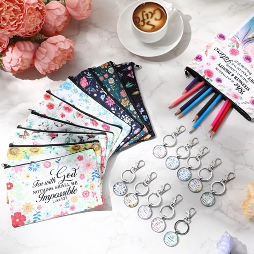Talltalk 20 Pcs Christian Gift Bulk for Women Religious Cosmetic Bag Inspirational Scripture Keychain(Flower Style) 1
