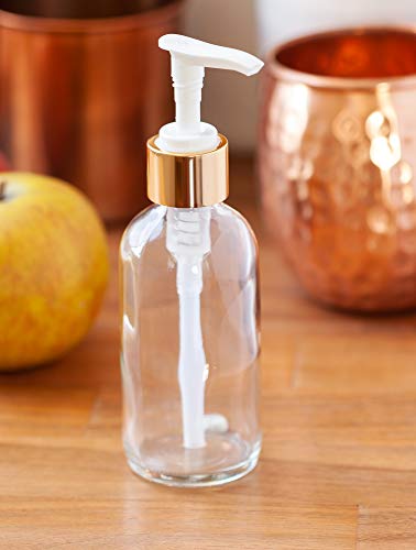 JUVITUS 4 oz Clear Boston Round Thick Plated Glass Bottle with Gold Lotion Pump (12 Pack) + Funnel - Perfect for Home Decor, Kitchen, Bathroom, Guest, Essential Oils, DIY, Wedding/Shower Gifts 6