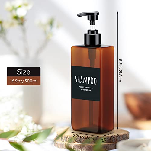 Segbeauty Shampoo and Conditioner Dispenser, 2 Pack of 16.9oz Refillable Soap Dispensers, 500ml Empty Plastic Pump Press Bathroom Shower Bottles for Liquid Soap Lotion Gel Essential Oil Amber 6