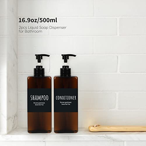 • 【Large Capacity】Each dispenser bottle holds 16.9oz/500ml reasonable large capacity to meet the whole family daily essential needs. 2 packs of pre-labeled water-proof label bottles, indicating SHAMPOO and CONDITIONER can help you identify them easily.