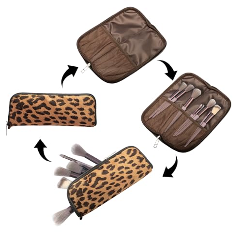 Large Capacity Makeup Bags, 2 Pieces, Leopard Print, Cosmetic Travel Toiletry Organizer Bag, Soft and Warm Material (Brown) 4