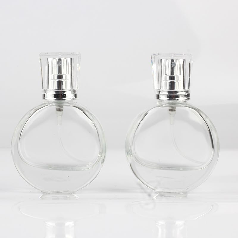 HOT ! QUUPY 2Pcs 25ML Refillable Glass Perfume Bottles Round Clear Travel Spray Bottles Fine Mist Atomizer for Perfume Cosmetics and Travel Use