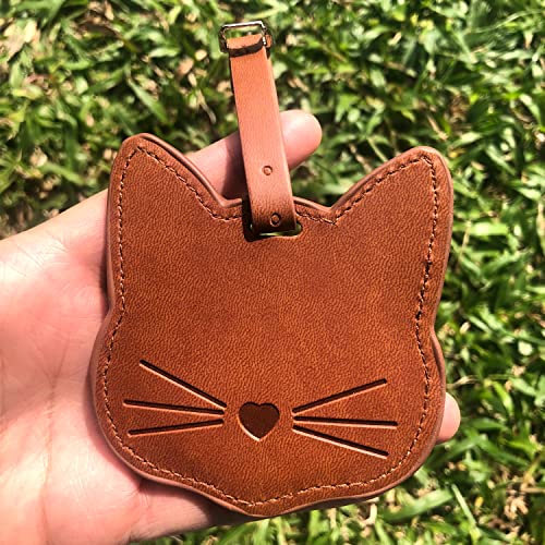 Cute Cat Shape Luggage Tags ID Label and Address Card, PU Leather Luggage Identification Tags for Travel Bag Suitcase Brown Black 2pcs 1