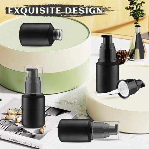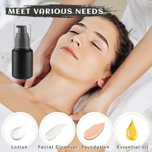 8 Pcs 30ml/1oz Frosted Glass Bottles Empty Pump Dispenser Jar Travel Lotion Vials with Plastic Pump for Toiletry Liquid Foundation Cream Cosmetic Samples - Black 4