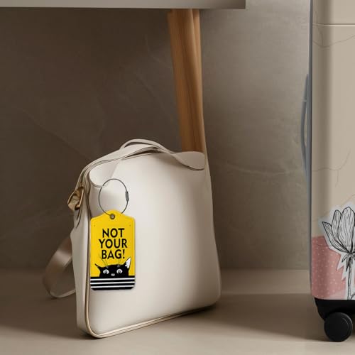 Funny Cat Luggage Tags for Suitcases,Not Your Bag Travel Bag Tag with Steel Loop,Cute 2 Pack Baggage Tag Blue,Handbag School Bag Backpack Traveling Accessories,Cat Lover Gifts(Yellow) 4
