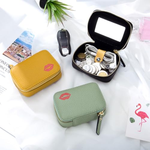 Kichvoe Leather Lipstick Case Cute Lipstick Holder Mini Leather Makeup Bag Portable Cosmetic Storage Bag Travel Toiletry Bag Organizer with Mirror-3.9 * 2.7Inch Random Color 1