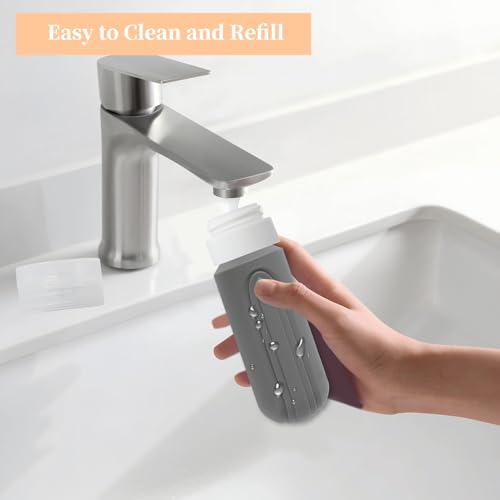 • Easy to Use: Unlike other bottles, our travel shampoo bottles can stand upright and upside down, plus their wide mouth opening, filling and cleaning become very simple. Moreover, with a curved design on the edge of the bottle cap, you can easily open it with one hand, and the soft silicone material makes it easy to squeeze.