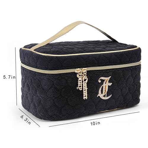 HOT ! Juicy Couture Black Makeup Bag Cosmetics Organizer Travel Essentials Train Case Terry Cloth Simulated Pearl Logo