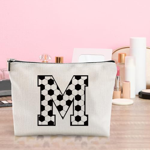 LONGXIN Soccer Initial A-Z Letter Makeup Bag - Monogrammed Cosmetic Toiletry Pouch for Women, Mom, Girls, Best Friend, Coach - Personalized Team Gift (M) 1
