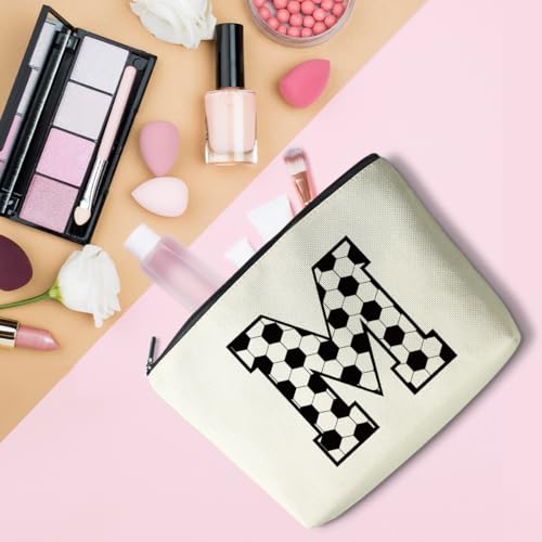 LONGXIN Soccer Initial A-Z Letter Makeup Bag - Monogrammed Cosmetic Toiletry Pouch for Women, Mom, Girls, Best Friend, Coach - Personalized Team Gift (M) 2