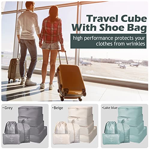 Chumia 21 Set Packing Cubes Back to School Travel Clothes Luggage Suitcases Organizer Trip College Dorm Toiletry Shoes Bag(Beige, Gray, Lake Blue) 4