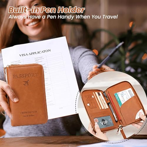 Rowgins RFID Blocking Passport Holder Wallet Travel Essentials Organizer with Multi-Functional Card Slots & Wrist Strap for Women Men (Ocean Blue) 7