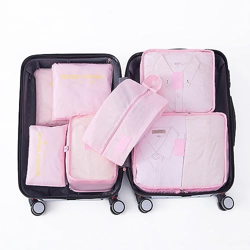 Packing Cubes 7 Set Packing Organizers Travel Luggage Organizer Bags for Backpack Suitcases (Pink) 7