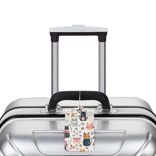 HOT ! Boho Cats PU Leather Luggage Tags for Suitcases 2 Pack Baggage Tags with Privacy Cover ID Label Address Card and Durable Metal Ring for Women Men Travel