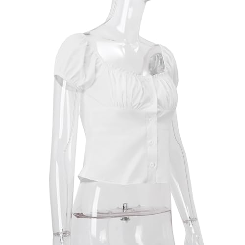HOT ! Women Square Neck Button Down Shirts Short Puff Sleeve Dressy Casual Blouse Tops Going Out Summer Tops