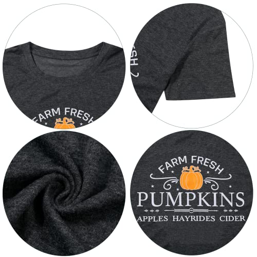 Pumpkin Shirt Women Farm Fresh Shirt Pumpkins Graphic Tees Causal Letter Printed T-Shirt Halloween Fall Blouse 6