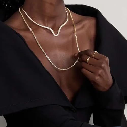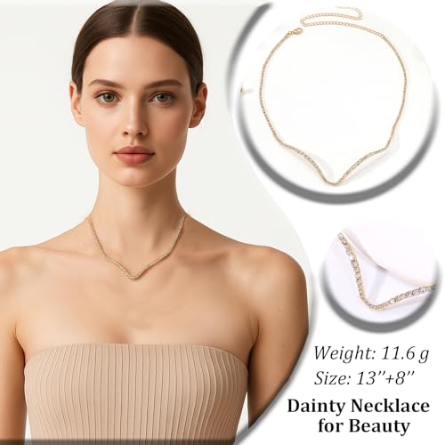 • Shine with elegance in this StoneFans gold necklace for women, designed to add just the right amount of shimmer to your neckline. Featuring a refined V-shaped silhouette adorned with dazzling rhinestones, this choker necklace for women is both graceful and modern. Its minimalistic yet striking design blends effortlessly with both formal and casual wear, making it a standout choice for everyday use or special occasions.