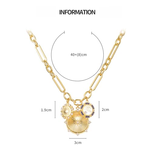 Chunky 18K Gold Plated Chain Choker Sun Round Pendant Necklaces for Women Jewelry 5