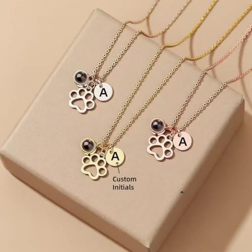 HOT ! Custom Necklace with Picture inside, Personalized Dog Paw Projection necklaces with initial, Picture necklace Personalized Photo, Pet Dog Cat Memorial Gifts for Women