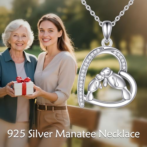 HOT ! Manatee Gifts for Women 925 Sterling Silver Manatee Necklace Heart Pendant Cute Animal Jewelry Gifts for Women Mother Mom