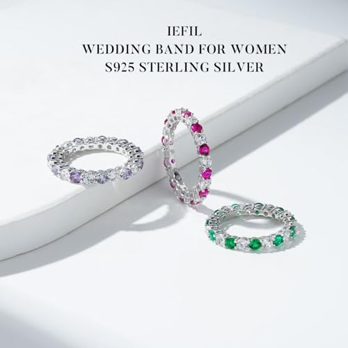HOT ! Iefil Eternity Rings for Women, Size 5-9 Sterling Silver Birthstone Gemstone Rings Wedding Eternity Band for Women