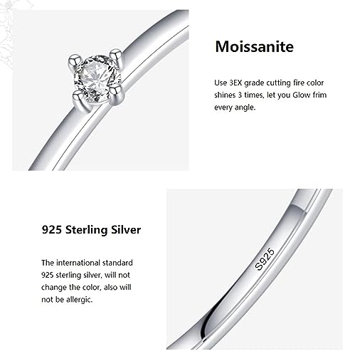 • Parameter: women engagement ring, round brilliant cut, ring width: 1.2mm, stone diameter: 2mm, ring weight: 0.74g. The material: moissanite, plated 925 sterling silver. Other gifts: pamphlet, flannel bag, jewelry cleaning cloth.