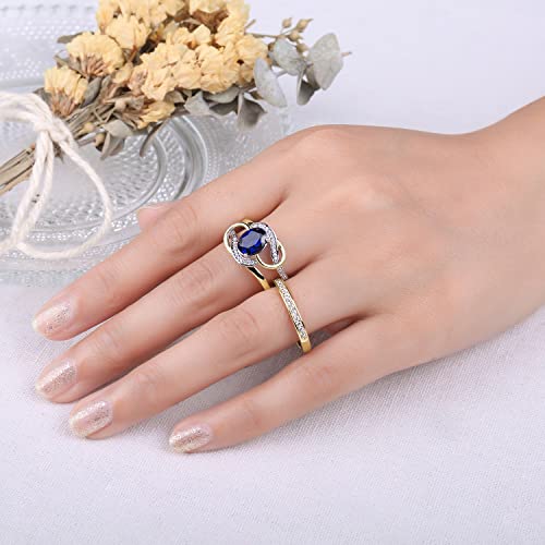 HOT ! JewelryPalace Infinity Knot 1.5-2ct Created Blue Sapphire Engagement Rings, Vintage 925 Sterling Silver Wedding Band Enhancer Ring Bridal Set