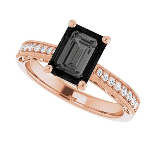 More information about 2.00 Ct Emerald Cut Black Onyx Engagement Ring Antiqe Art Deco Side Round Diamond Emerald Ring Black Moissanite Ring Proposal Ring 925 Sterling Silver 10k/14k/18k Solid White Gold Gift For Her