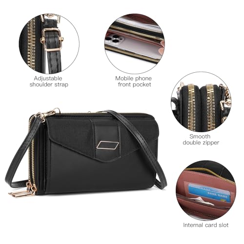 • Double Zipper Design Phone Purse: This small phone crossbody bags for women features a front phone pocket and a double zipper wallet style storage bag, with 6 card slots, 4 long note slots, 1 coin zipper pocket, and 1 phone compartment. Suitable for mobile phones under 6.4 inches, as well as essential items such as napkins, lipstick, coins, credit cards, ID cards, passports, keys, etc