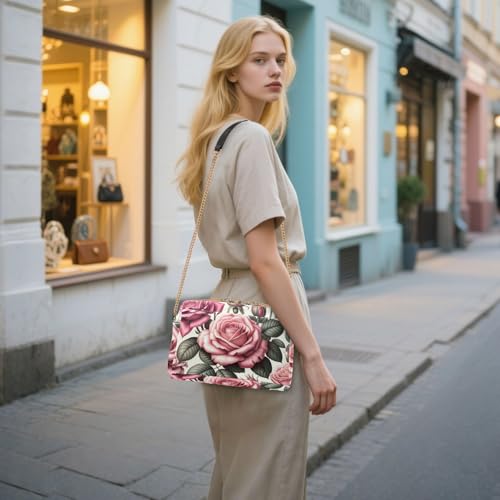 susiyo Crossbody Bag for Women Pink Color Rose Flowers PU Leather Shoulder Purses Womens Chain Bag 4