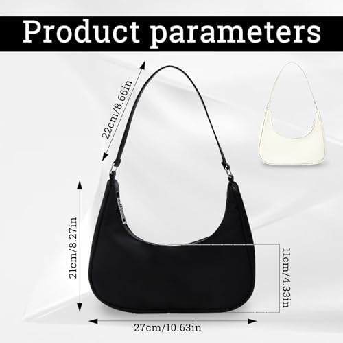 More information about Crescent Bag, Nylon Dumpling Bag with Zipper Mini Handbag for women, Fashionable Luna Bag for Shopping, Dating (White)