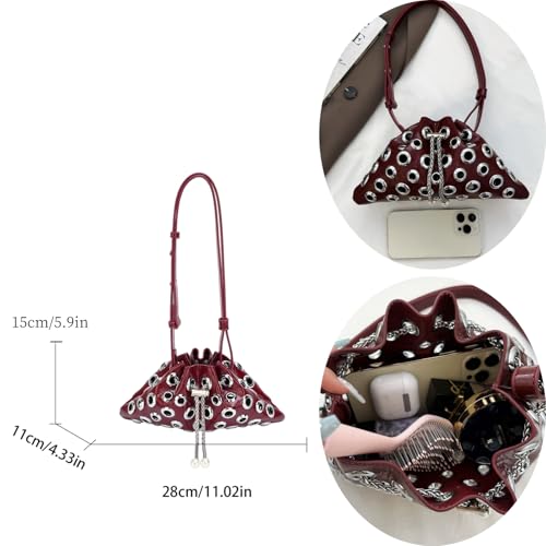 More information about Trendy Drawstring Shoulder Hobo Bag for women Handbags, Metal Hole Cute Crossbody Purse with Adjustable Strap