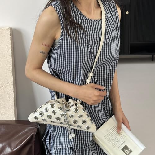 HOT ! Trendy Drawstring Shoulder Hobo Bag for women Handbags, Metal Hole Cute Crossbody Purse with Adjustable Strap