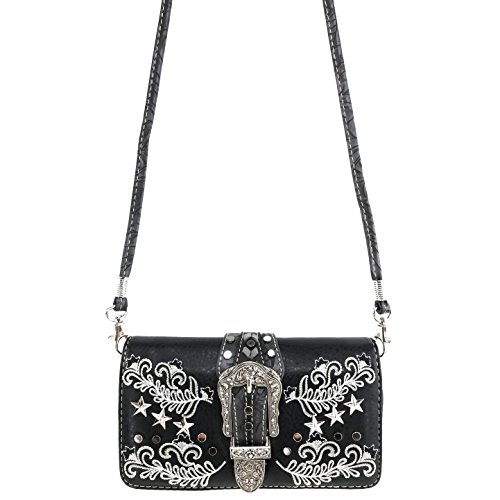 More information about Justin West Buckle Western Floral Damask Embroidery Studs Stars Concealed Carry Handbag Purse