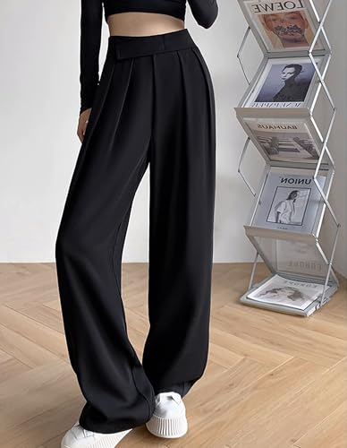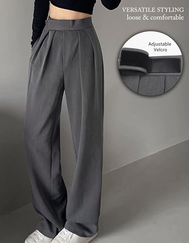 HOT ! Women's High Waist Wide Leg Dress Pants, Adjustable Waist, Cooling Touch Work to Travel Trousers, Business Casual Office