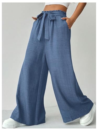 More information about WDIRARA Women's Frill Trim Elastic High Waist Belted Pants Wide Leg Trousers
