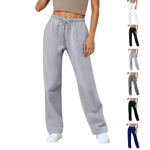 HOT ! Straight Leg Sweatpants for Women Casual Elastic Drawstring High Waisted Joggers Wide Leg Lounge Pants with Pockets