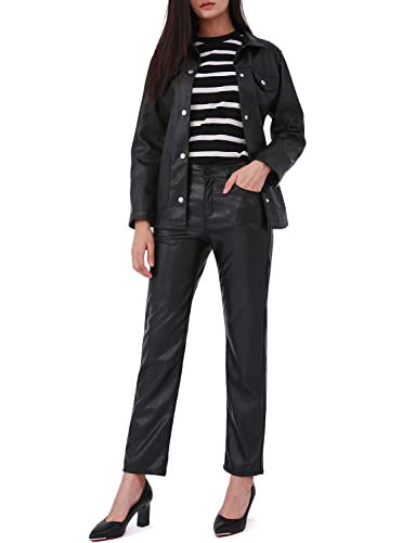 Balleay Art Faux Leather Pants for Women, Straight Leg Mid Waist Butt Lift Elastic Black Pants with 5 Pockets 7