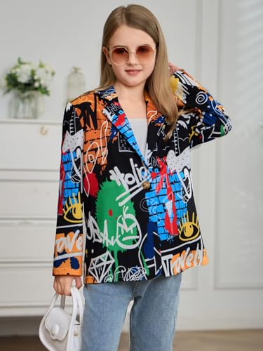 More information about WDIRARA Girl's Graffiti Print Button Down Suit Blazer Lapel Neck Long Sleeve Casual Jacket