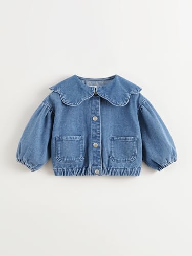 More information about marc & janie Girls Lace Large Lapel Denim Jacket Bubble Sleeve Cotton Outerwear Kids Button Down Tops 250197