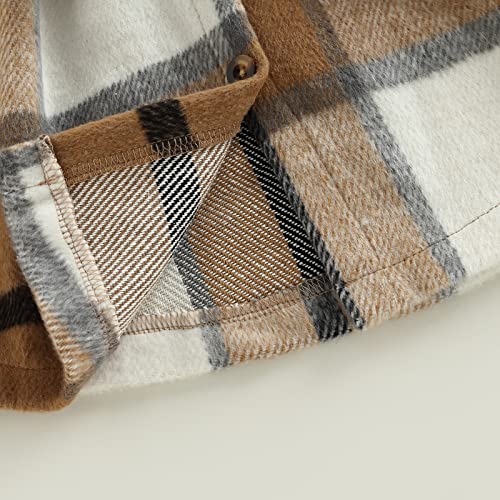 ZAXARRA Toddler Girls Flannel Plaid Jacket Long Sleeve Button Down Belted Coat Hooded Outerwear Fall Winter Clothes 7