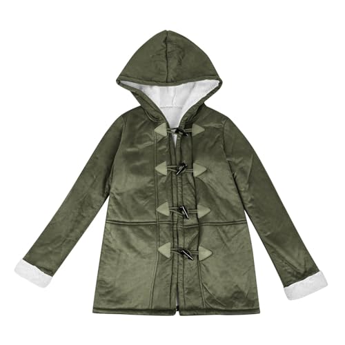 HOT ! Girls Fleece Jacket Suede Sherpa Lined Warm Winter Coats with Hood Faux Fur Thermal Button Down Hooded Parka Coat