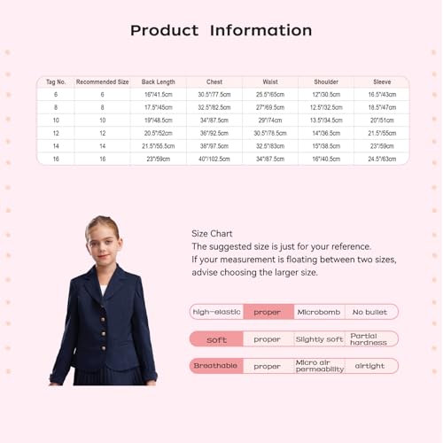 • Girl's suit jacket is made of premium fabric, lightweight and soft, make you feel comfortable. Buttons closure for easy wearing