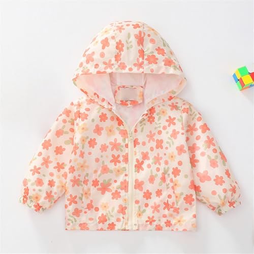 Lightweight Jacket for Girls Flower Print 𝗪aterproof Rain Hooded Jackets Toddler Girls Long Sleeve Coat with Zippers 1