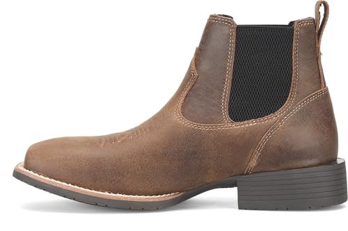PHANTOM RIDER Dorton Mens Chelsea Boots Western Leather Square Toe Slip On Cowboy Dress Casual Work Ranch Wide Fit 6