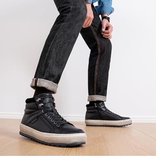 Jousen Fashion Mens Casual Shoes High Top Leather Sneakers for Men 5