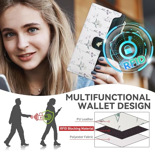 Wallet Women Slim Wallets for Women with RFID Cute Thin Black Women's Wallet Kawaii Flower Womens Ladies Card Holder Wallets 4